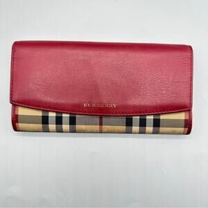 $150/ BURBERRY Continental Haymarket Check Leather Wallet Dark Red