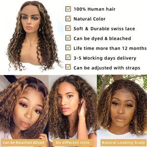 150% Density 13x1 Lace Front Human Hair Wig 4/27 Highlight Deep Wave Lace Front