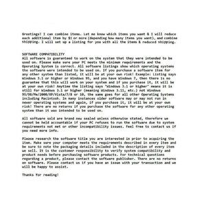 I am clearing out some VINTAGE software titles listed in pictures 1, 2&3 & 4, 5&6 & 7, 8&9. I have too many of these.