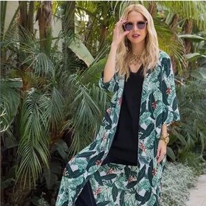 $150 NWT Rachel Zoe Palm Print Duster Kimono Swim Cover Up