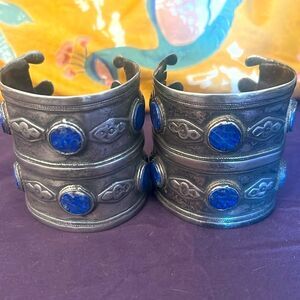 150 year old Sterling Silver Lapis Cuff Bracelets