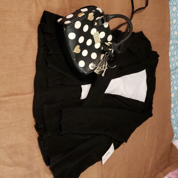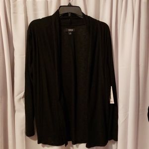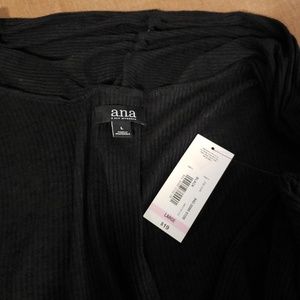 ANA NWT black sweater. Made of a ribbed knit of polyester, rayon and spandex. It is open in the front and drapes beautifully on your shoulders. This is a staple for any casual, or upscale, occasion.