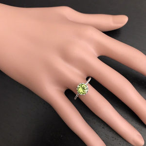 1.50 Carats Exquisite Natural Peridot 14K Solid White Gold Ring