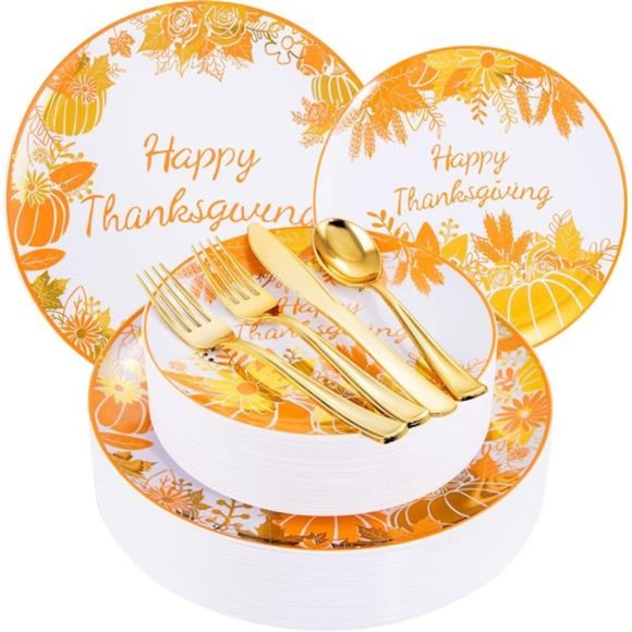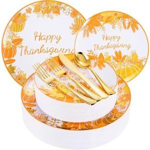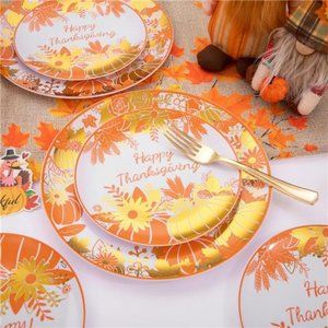 🧿HEALTHY: Our Thanksgiving dinnerware sets are made of 100% food grade plastic, non-toxic and harmless, BPA free.We don't just sell goods, we care about your health, you can use our Thanksgiving disposable dinnerware with confidence.