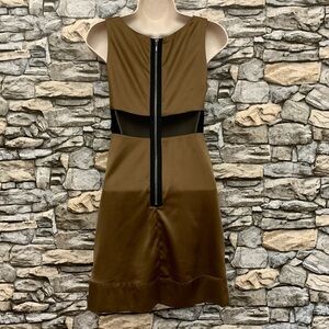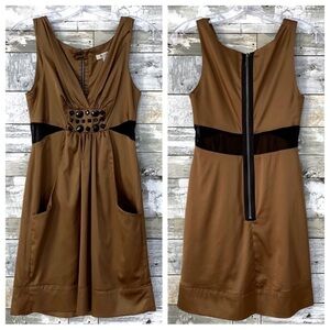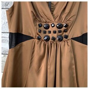 #152 BCBGeneration Jeweled Embellished Mesh Bronze Chocolate Satin Dress BCBG 2