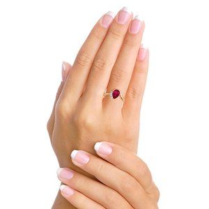Center Gemstone: 1 Pear shape, 9X6 mm, Ruby = 1.50 ct