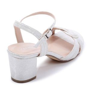 (1522) Paradox London Henrika Silver Glitter Suede Mid Block Heel Sandal Size 9