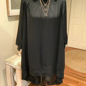#153 Gorgeous Chicos Black Lace Bottom Tunic W/ Necklace and Earrings Set SzMed