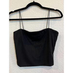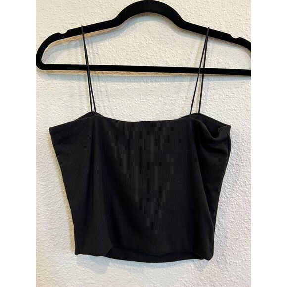 #153 Love Tree String Strap Cropped Ribbed Black Tank Top Size Medium