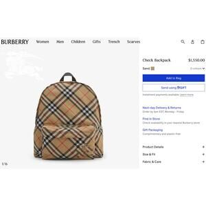 $1550 NEW BURBERRY CHECK LARGE BACKPACK NWT AUTHENTIC!