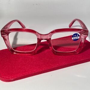 1554 Claudia Square Concave 1.5 NEW Pink Reading Glasses Blue Light Filter