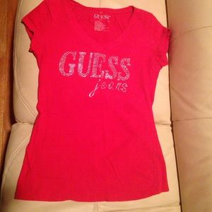 Guess T-shirt. Red with sparkling stones . Size XL but runs small ( M/L)