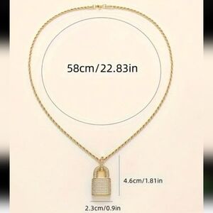 This exquisite gold-plated padlock pendant necklace is adorned with sparkling stones, perfect for adding a touch of elegance to any outfit. Ideal for weddings, parties, and daily wear.