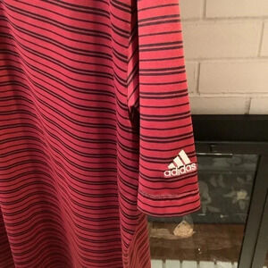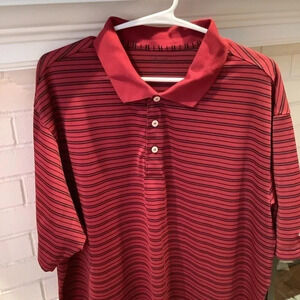 Men’s Adidas Performance Dri Fit Polo Sz XL. Great red and black color and quick dry performance fabric make this great for warmer weather. Pit to pit is 25” and 20” from pit to bottom of shirt