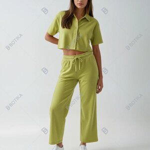 NWT ANDIE terry cloth SET crop pants + cropped button up top