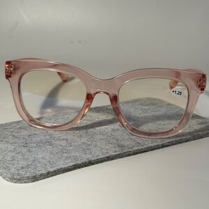 1563 Mona Reading Glasses 1.25 Pink Taupe Readers Rounded Square Frame NWT