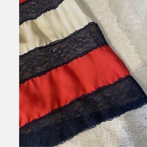 $1,565 GUCCI Stripe Lace-paneled silk-twill Pencil Skirt Small