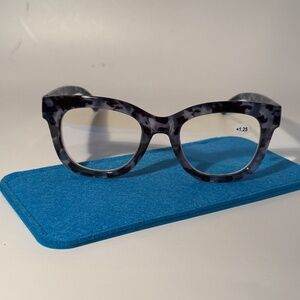 1566 Mona Reading Glasses 1.75 Black GrTortoise Readers Rounded Square Frame NWT