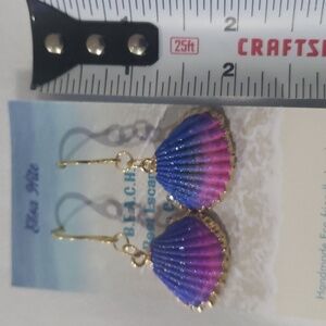 Shell Hand Painted Purple Pink Gold Color Dangle Earrings Handmade NWT