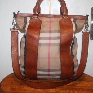 $1575 Burberry House Check Bonington Tote or Messenger Shoulder Bag Saddle Brown