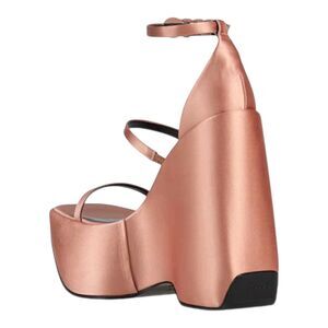 $1575 New VERSACE Leather Platform Sandals Women 10 Beige Gold Satin Wedge Italy