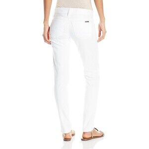 Elevate your wardrobe with these designer Lilly Pulitzer Worth Skinny jeans in resort white. These classic jeans feature a solid pattern, mid-rise fit, and a zip and button closure. The fabric is a blend of polyester, spandex, rayon, and cotton denim with a light wash that makes them perfect for all seasons.