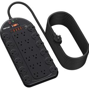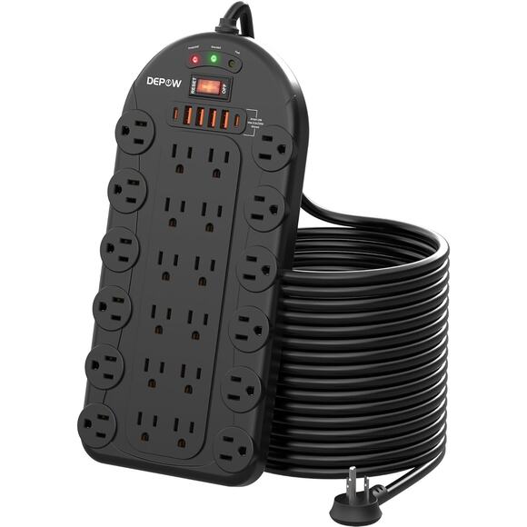 15Ft Power Strip Surge Protector, 3,400 Joules, DEPOW 24 AC Outlets, 6 USB