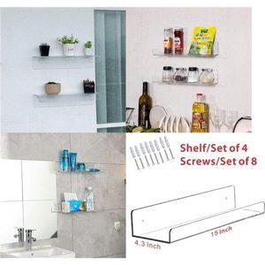 15"Invisible AcrylicFloating Wall Ledge Shelf,Wall Mounted Nursery KidsBookshelf