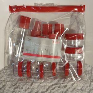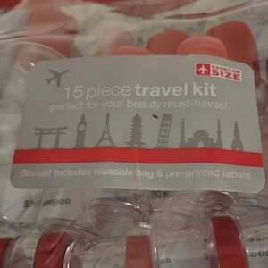 This New factory sealed pink 15 piece travel kit is perfect for your beauty must have while traveling. Reusable pouch measures 7" x 6-1/2. See photos for contents. All offers welcome.
