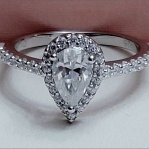 ●1.5CT Pear Halo Moissanite Diamond Ring , 1CT Main stone and 0.5CT stones surrounding the principal stone.