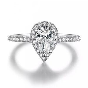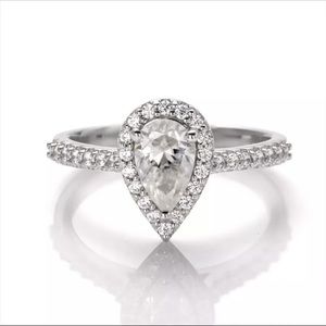 1.5ct Pear Cut Halo Moissanite Diamond Wedding Engagement Ring