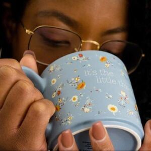 With a message that's sure to bring a smile to your face, you'll feel content sipping your favorite beverage from this 15-Ounce Stoneware "It's The Little Things" Mug from Threshold™. Covered with a dainty print of orange, cream and light blue flowers, this pretty blue mug features the phrase "It's The Little Things" to add positivity to your day. Suitable for serving both hot or cold beverages, this stoneware mug also makes a perfect gift for yourself or a loved one. And with the microwave- and dishwasher-safe construction, it's also easy to reheat beverages and clean up after use.