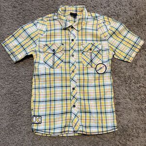 ☆ Yellow plaid sport patchwork button shirt - UNI C. Probably an Asian size 12 (which should fit 10-13)