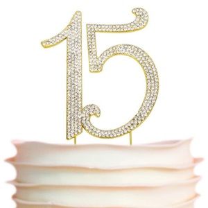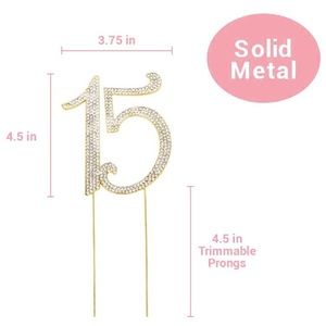 GOLD Birthday Cake Topper | Premium Bling Crystal Rhinestone Diamond Gems | 15th Birthday or Anniversary Party Decoration Ideas | Quality Metal Alloy | Perfect Keepsake (15 Gold)