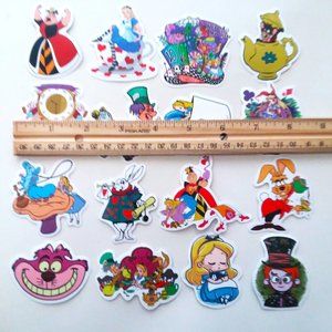 16 Alice in Wonderland Stickers Lot Cheshire Cat Laptop Water Bottle Rabbit Trip