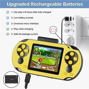 🧿🎁 Rechargeable Battery: Our handheld games built-in 800mAh high-capacity lithium battery, which can be charged and played at the same time. After each full charge, the game can be played for 5 hours. When you are on a business trip, travel, camping, you don't have to worry about running out of power. (Note: Please fully charge the battery before the first use.)