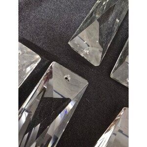 These rectangular clear crystal prisms are designed for chandeliers or decorative projects. Each piece has pre-drilled holes for easy hanging or attachment.