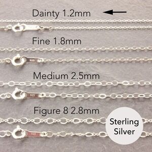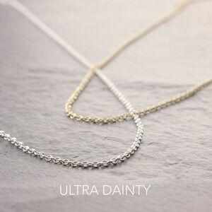 * This is a listing of ONE sterling silver necklace. Very dainty, super thin yet strong chain. * 16" * Chain thickness 1.2mm (shown as “Dainty” in the photo). Need another length or chain thickness? Just message us or visit our shop! * Quality solid .925 sterling silver. It can be polished over and over and will last a life time. * The chain length is approximate and from end to end. * Necklace is finished with a spring clasp. * New, and will come in branded packaging by a jewelry shop, Megu's Attic. Smoke free studio. 925 sterling silver sterling silver necklace sterling silver chain necklace silver necklace silver chain necklace silver dainty necklace silver dainty chain necklace silver delicate necklace silver delicate chain necklace silver thin necklace silver thin chain necklace silver dainty necklace silver dainty chain necklace silver jewelry mother’s day gift Christmas gift Gifts for her plain chain necklace minimalist necklace minimalist jewelry