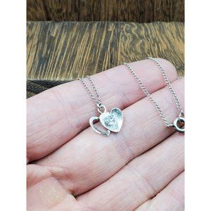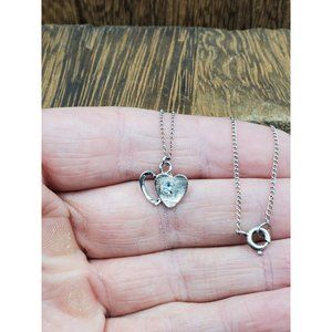 16 Inch Sterling Silver Double Heart Clear Quartz Gem Pendant Necklace