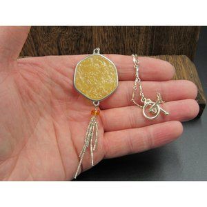 16 Inch Sterling Silver Yellow Man Made Material Tassel Necklace
