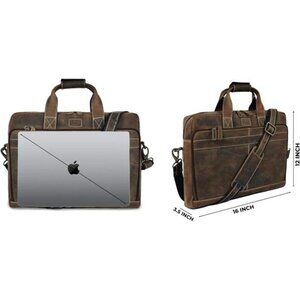 16" Leather Laptop Messenger Briefcase Bag for Men-Leather