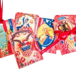 16 Pc Set Large Vintage Style Red Barnboard Independence Day Patriotic Tags