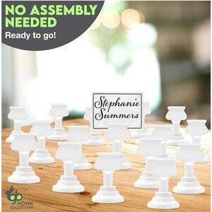 PREMIUM QUALITY: 16 White place card holders for table with premium quality steel construction. Sleek, durable & fade-resistant. Each 1.5-inch tall unit has a 1-inch diameter base for stability. No chipping or cracking issues.