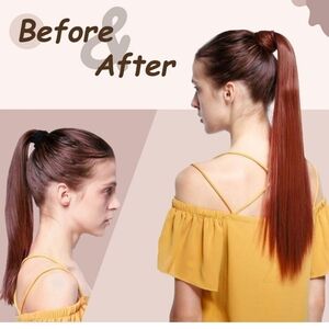 Real Human Hair Ponytail Hair Extensions】100% remy human hair extensions, salon quality, no tangle, no shedding, silky soft, our ponytail human hair can be dyed, strengthened, curled. Just few seconds and you will get a long thick ponytail like magic.