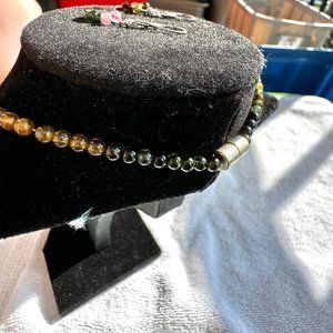Gorgeous crystal purple and green tourmaline gemstone necklace with matching earrings. In great conditoin. Lobster Claw closure. Length is not adjustable. 16" with round and pear shaped stones, and some shine like crystal. Magnetic closure