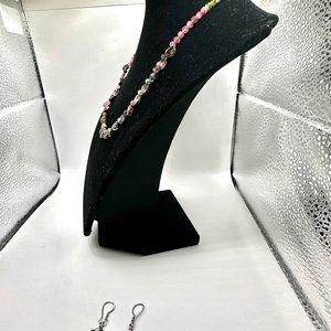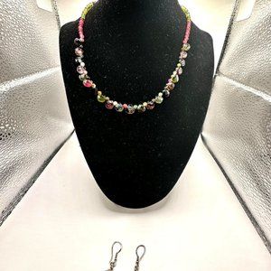 16" Purple and Green Natural Tourmaline Crystal Necklace and Matching Earrings