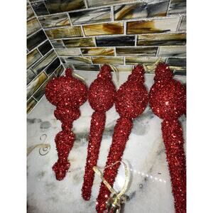 16 Red Dipped Glitter Christmas Tree Bulb Finials Ornaments Holiday Decor