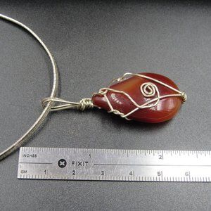 16" Sterling Silver Hand Wrapped Maroon Stone Pendant Necklace Vintage