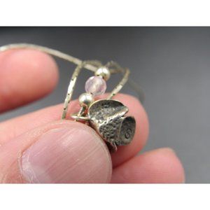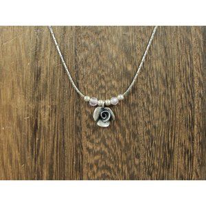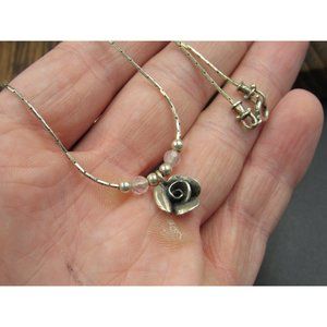 16" Sterling Silver Small Tarnished Flower And Stones Necklace Vintage