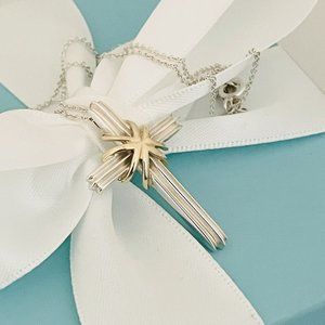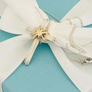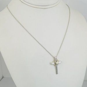 16" Tiffany & Co Cross Necklace in Sterling Silver and 18K Yellow Gold on Chain